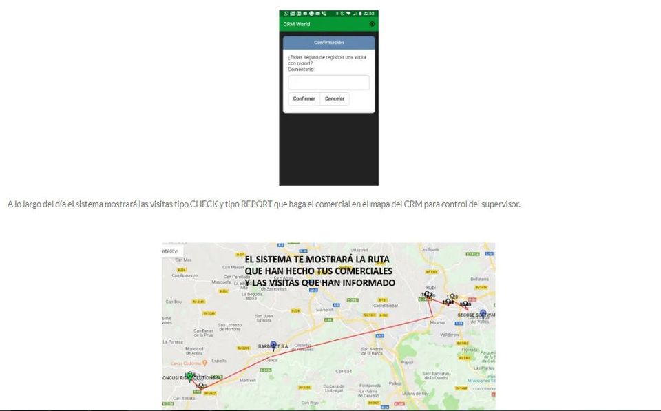 GeoReporting es la función que permite a los comerciales reportar sus visitas de forma fácil y cómoda desde sus teléfonos móviles.